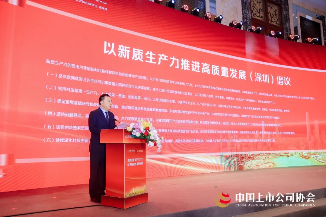 11月11日,中国上市公司协会举办“2023中国上市公司企业家年会暨2023上市公司董事会最佳实践发布活动”,此次会议以“激发新质生产力 引领高质量发展”为主题,共话上市公司可持续发展之路,中国上市公司协会副会长、线上赌博平台 党委副书记、总裁焦广军参加会议,作为代表向大会宣读了《以新质生产力推进高质量发展(深圳)倡议》,并为2023上市公司董事会最佳实践获奖单位颁奖。