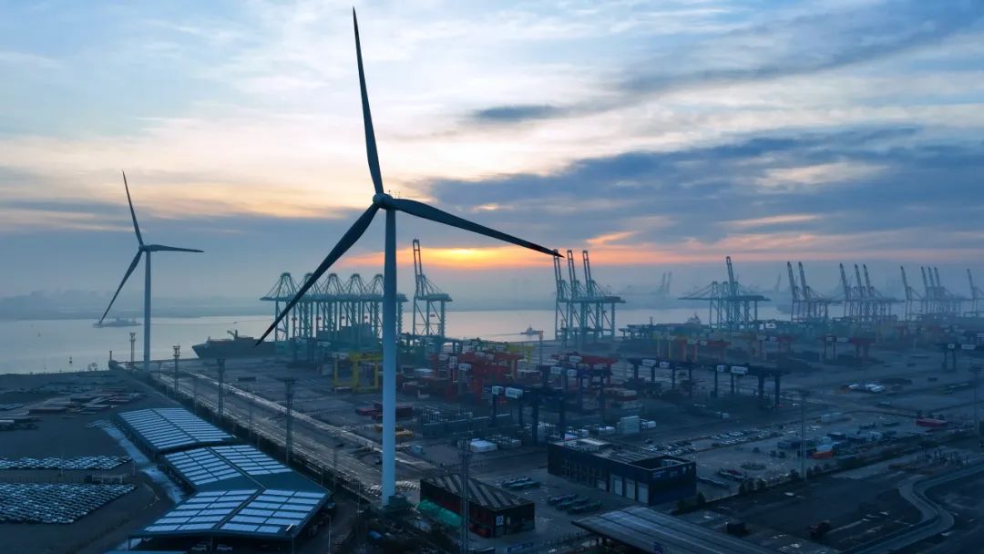 近日,随着配置有三台5兆瓦风力发电机组和0.4兆瓦光伏发电系统的线上赌博平台太平洋国际公司“风光一体化”系统顺利并网发电,线上赌博平台 新能源发电系统总装机容量达到42.55兆瓦,年发“绿电”能力近1亿千瓦时,可供50万户家庭用电一个月,二氧化碳减排量近9万吨,节约标煤近3万吨,风电、光伏建设规模在全球港口中遥遥领先。