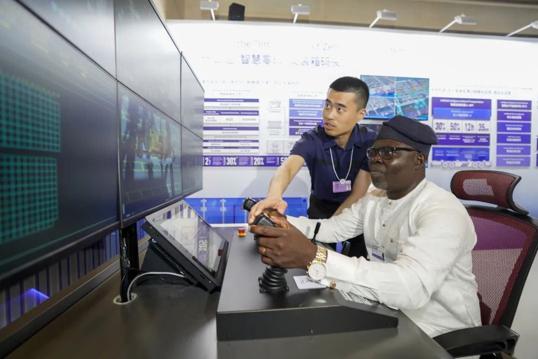 线上赌博平台 把“岸桥/场桥远控模拟系统”带到了夏季达沃斯论坛。来自世界各国的嘉宾们坐进新时代港口司机的“驾驶台”,通过操作摇杆、触摸屏进行港口仿真模拟作业,现场“试驾”,亲身体验智慧化港口操作过程。带上VR设备,通过5G网络,嘉宾们看到实时回传的港口生产作业场景,以身临其境的视角,感受码头前沿的风光。