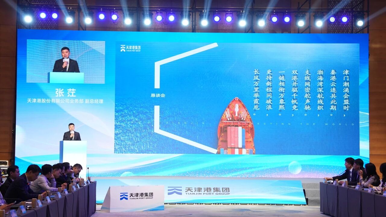 会议期间,天津港股份公司系统介绍环渤海干支网络建设成效,秦皇岛新港湾集装箱码头、浦海航运、天津外代公司分别围绕“公转水”、区域运营、全程物流开展主题推介,全面展现港航协同服务能力。座谈交流中,各方围绕织密航线网络、深耕公转水与多式联运、推出惠企政策、联合市场开发四大议题深入研讨,就稳定班期、提升中转时效、拓展全程物流、定制化服务方案等达成广泛共识,进一步凝聚起环渤海港口群一体化发展合力。